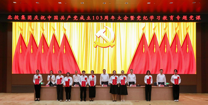 7月3日,集團(tuán)舉行慶祝中國共產(chǎn)黨成立103周年大會(huì)暨黨紀(jì)學(xué)習(xí)教育專題黨課,回顧建黨103年來的光輝歷程,慶祝黨的生日,表彰先進(jìn)、凝聚力量,進(jìn)一步激勵(lì)集團(tuán)各級黨組織和廣大黨員奮勇爭先、真抓實(shí)干,為集團(tuán)高質(zhì)量發(fā)展,為將城市副中心打造成為中國式現(xiàn)代化進(jìn)程中的城市發(fā)展樣板貢獻(xiàn)力量。集團(tuán)黨委委員、領(lǐng)導(dǎo)班子成員,全體中層領(lǐng)導(dǎo)人員,二級單位領(lǐng)導(dǎo)班子成員,全體黨員和黨員發(fā)展對象,集團(tuán)團(tuán)委委員及受表彰人員等700余人參加。會(huì)議由集團(tuán)黨委委員、紀(jì)委書記蔭春濤同志主持。
