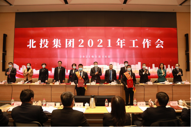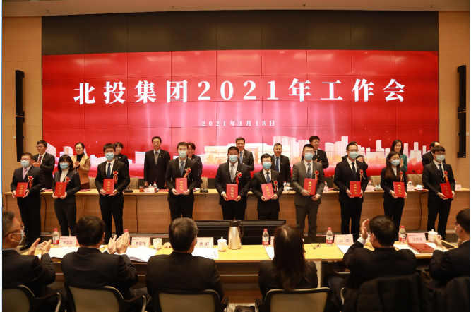 集團黨委委員、總會計師孫洪山宣讀《北投集團關于2020 年度績效考核嘉獎的決定》,對北投投資公司、新航城開發公司、通投公司、北投通州分公司、北投通城公司、北投運營公司、北投置業公司、北投靜態交通公司、綠心綠化項目部、二一項目部、冬奧村人才房項目部、三大建筑項目部,集團融資管理部、黨委工作部、投資發展部、財務管理部、設計管理部分別給予嘉獎。